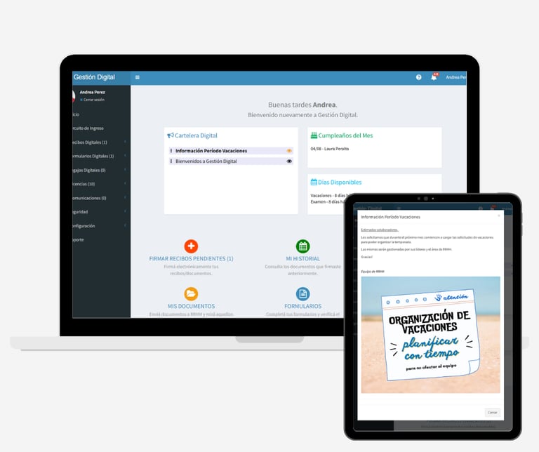 Informá, notificá y conectá a toda tu organización en tiempo real con la Cartelera Digital y la Mensajería Interna